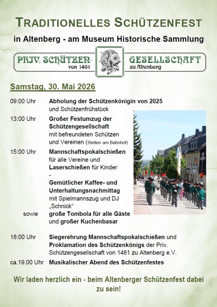 Herzlich willkommen auf den Internetseiten der Privilegierten Schützengesellschaft von 1461 zu Altenberg e. V.